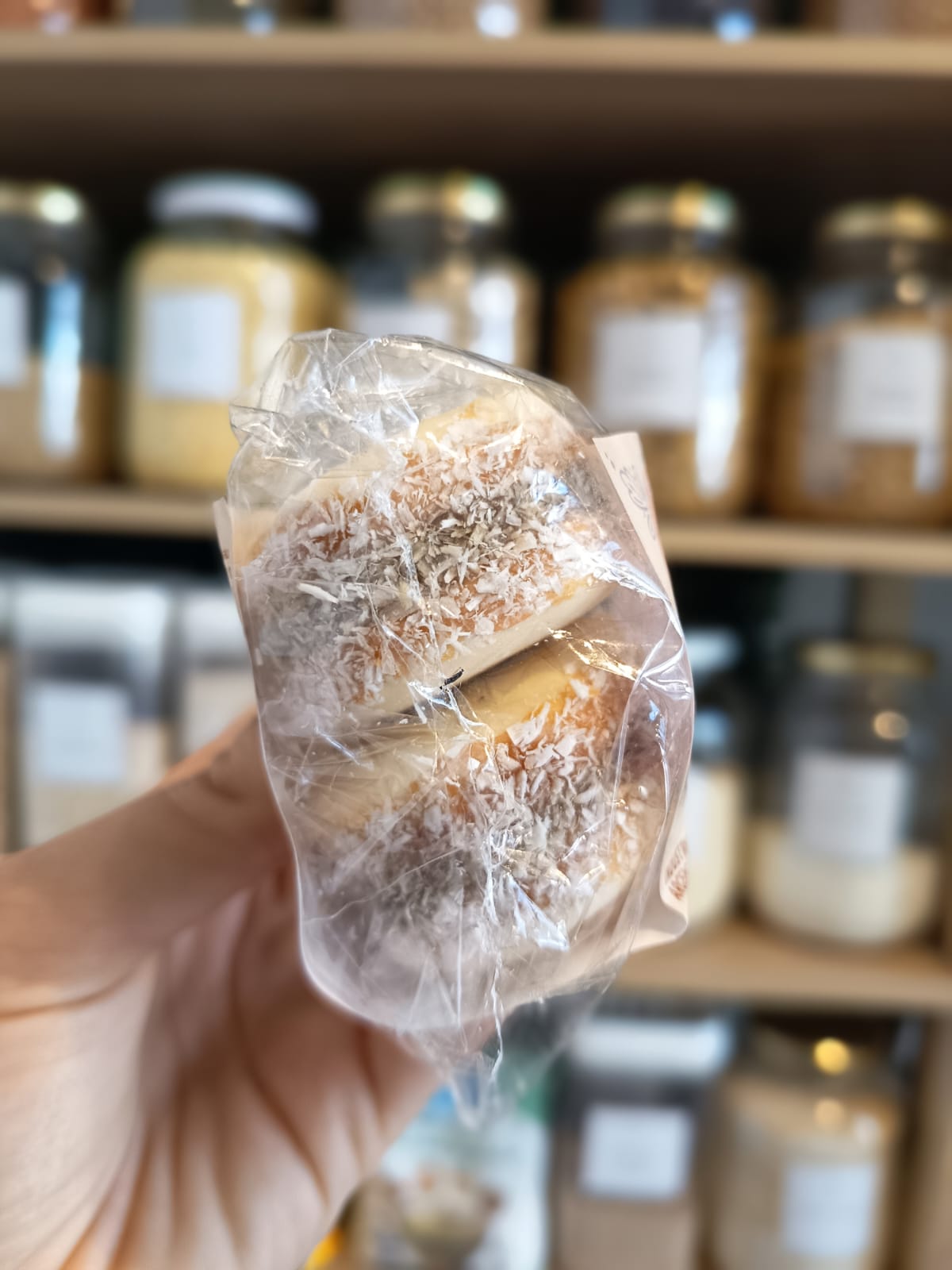 INGREDIENTES: Azucar, margarina, almidon de arroz, almidon de mandioca, cacao amargo, huevo, dulce de leche repostero, almidon de maiz, coco rallado, ralladura de limon , esencia de vainilla